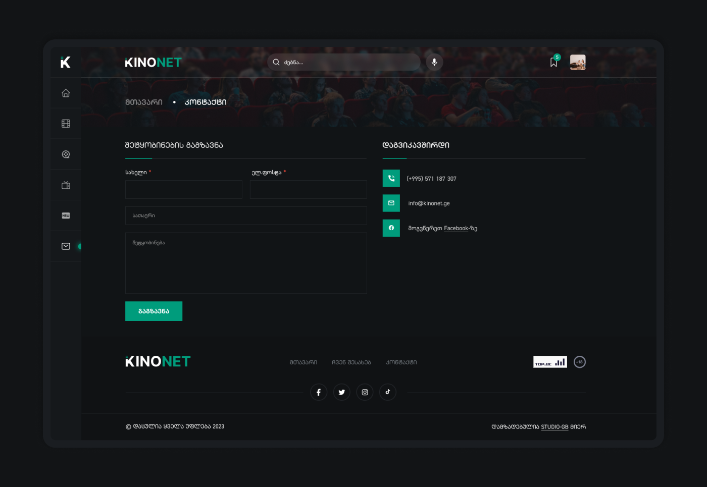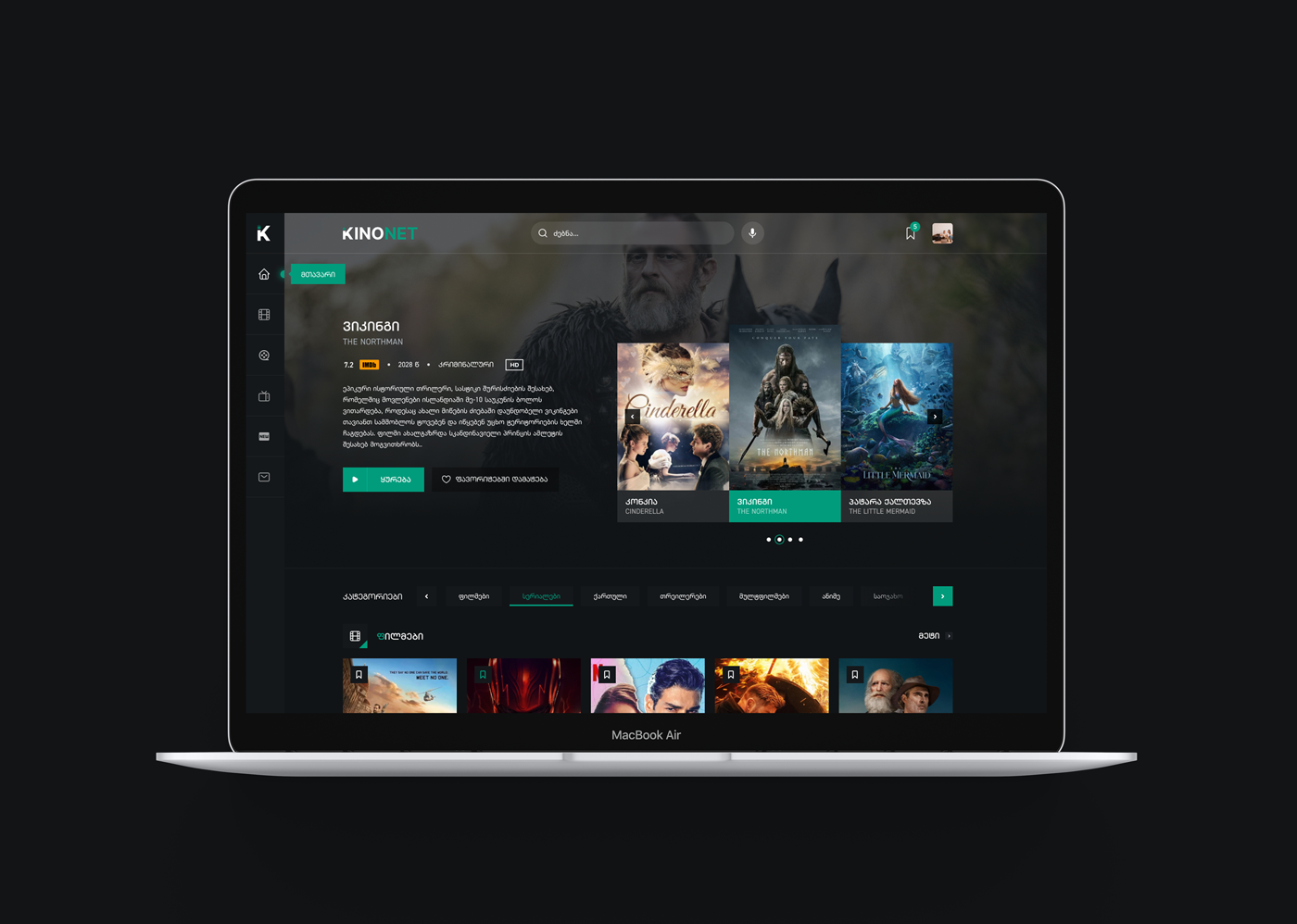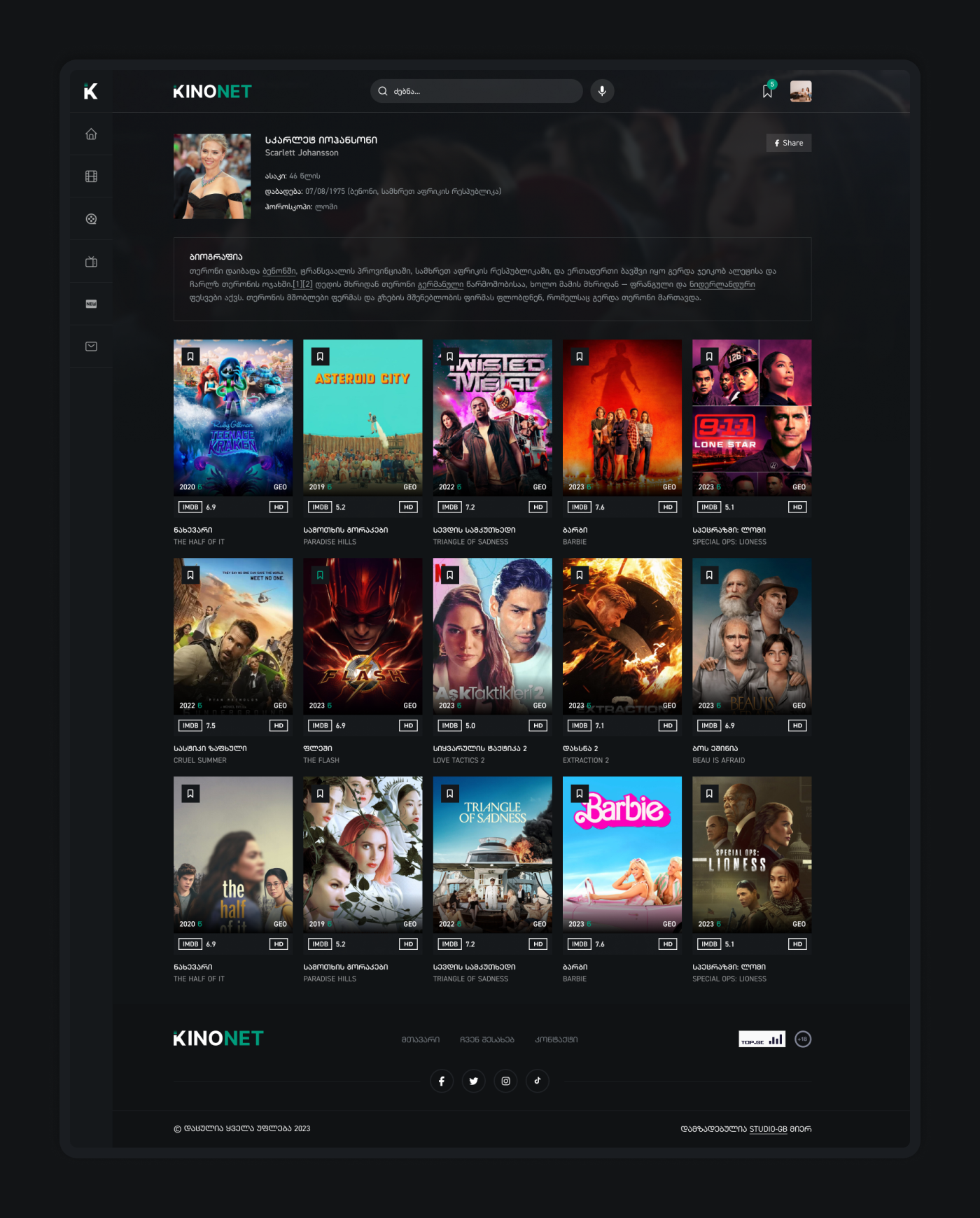 KINONET ფილმების ვებ დიზაინი