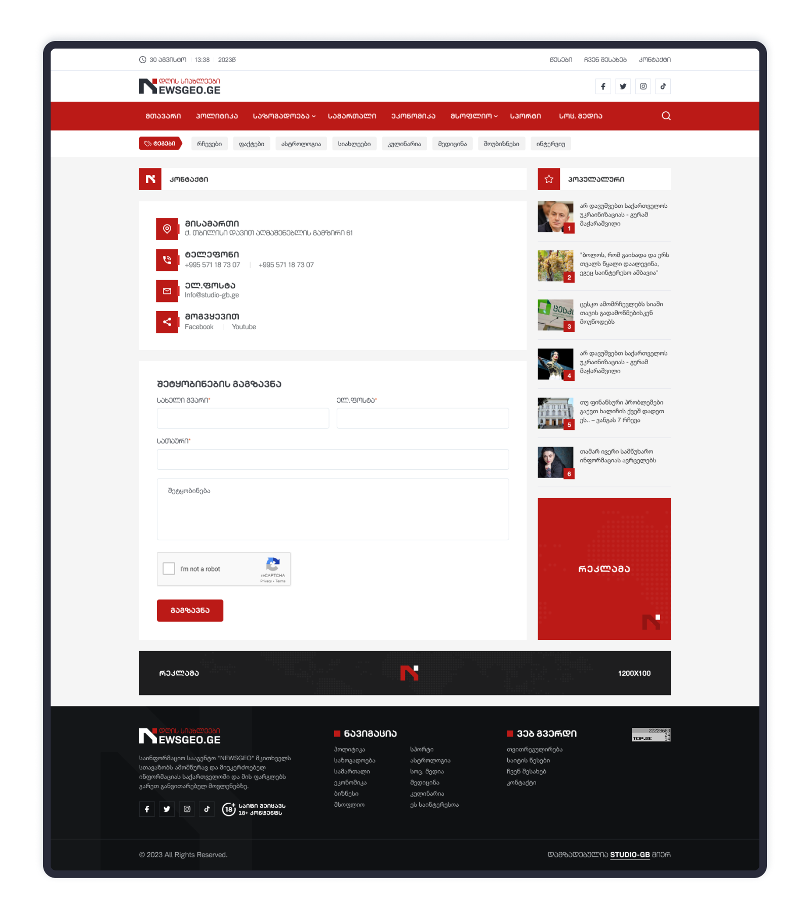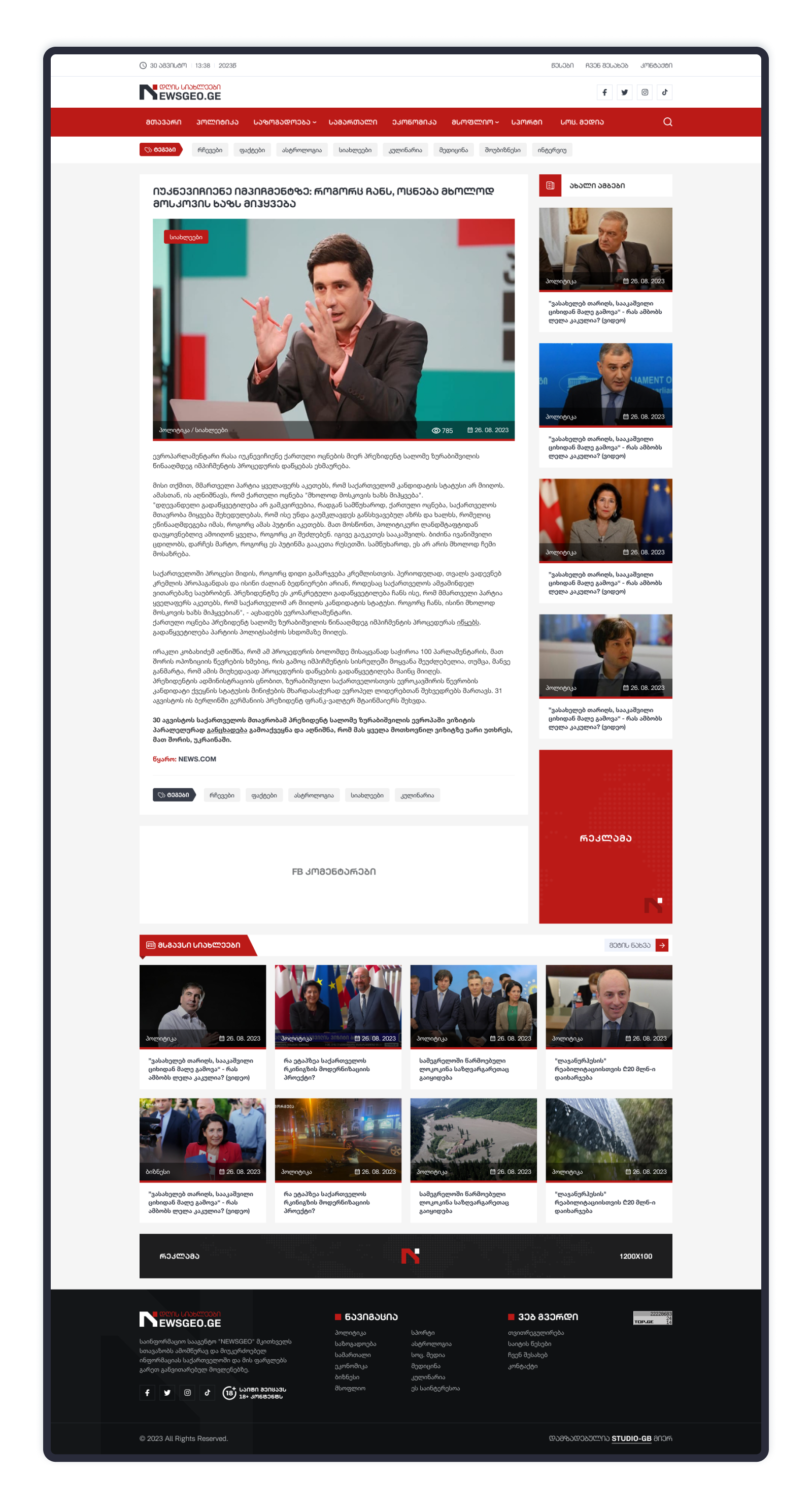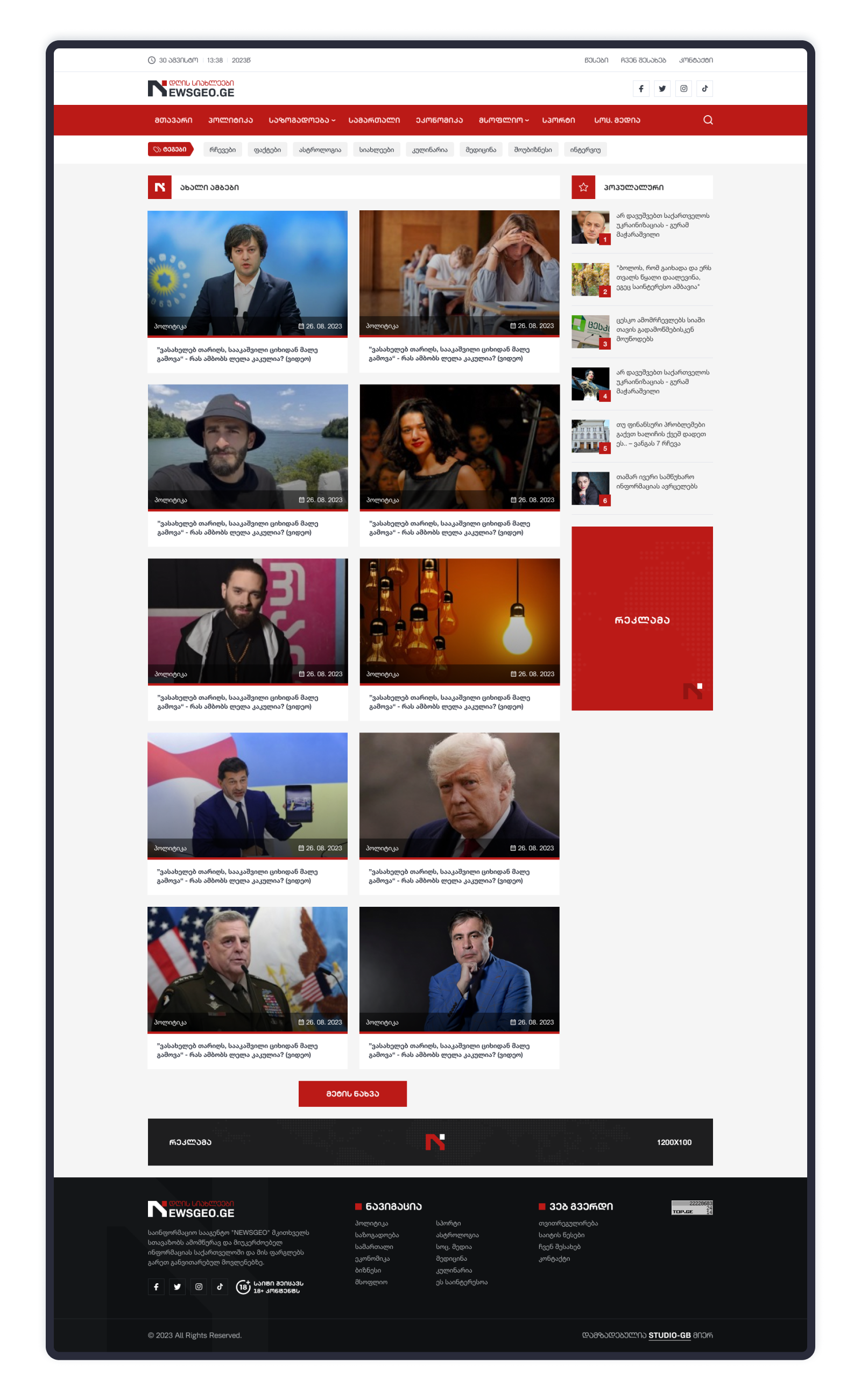 საინფორმაციო პორტალის დიზაინი